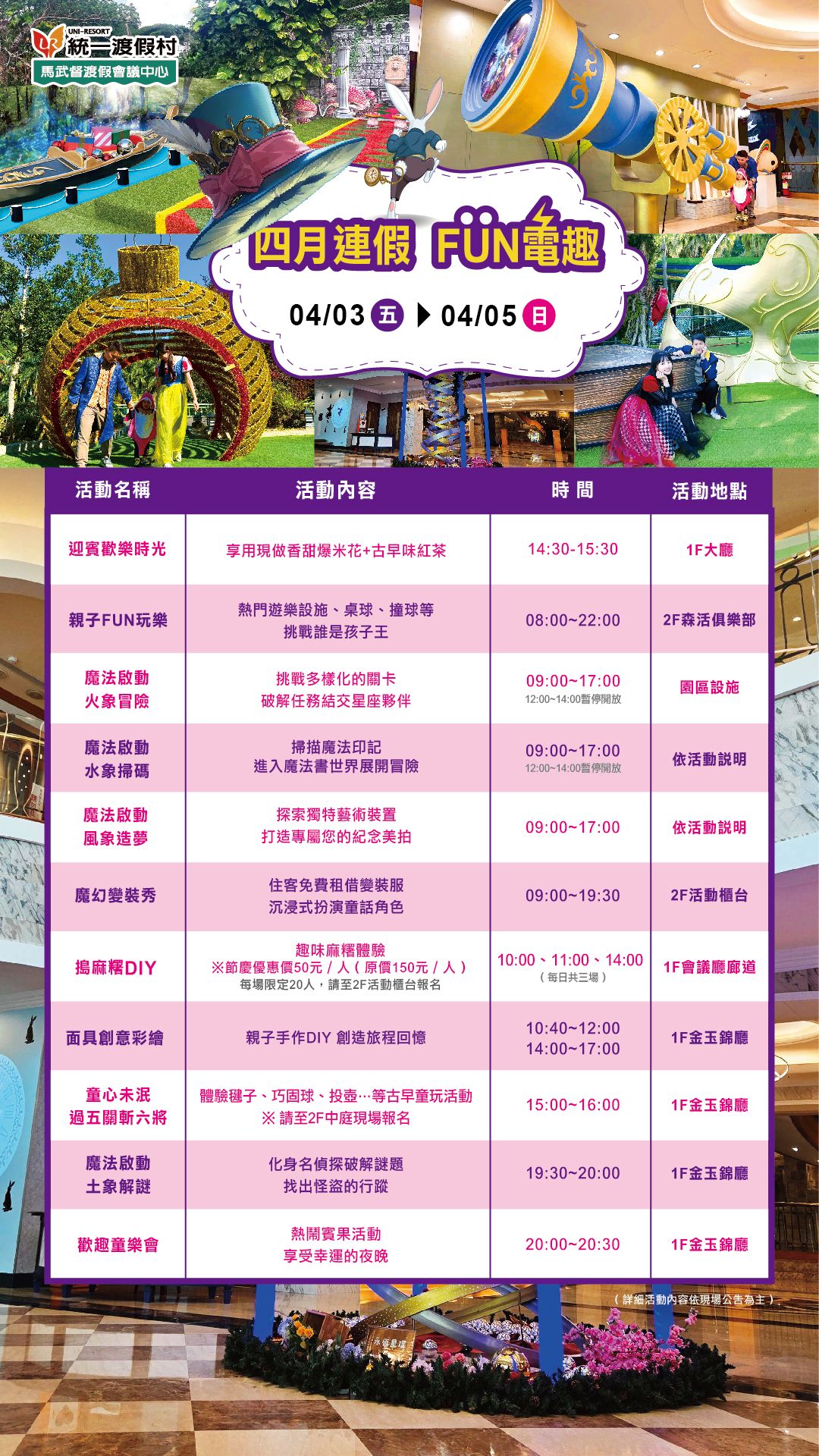 新竹馬武督展開夢幻國度魔法啟動,連假限定『贈一位12歲以下兒童免費入住』,再贈早餐一客!